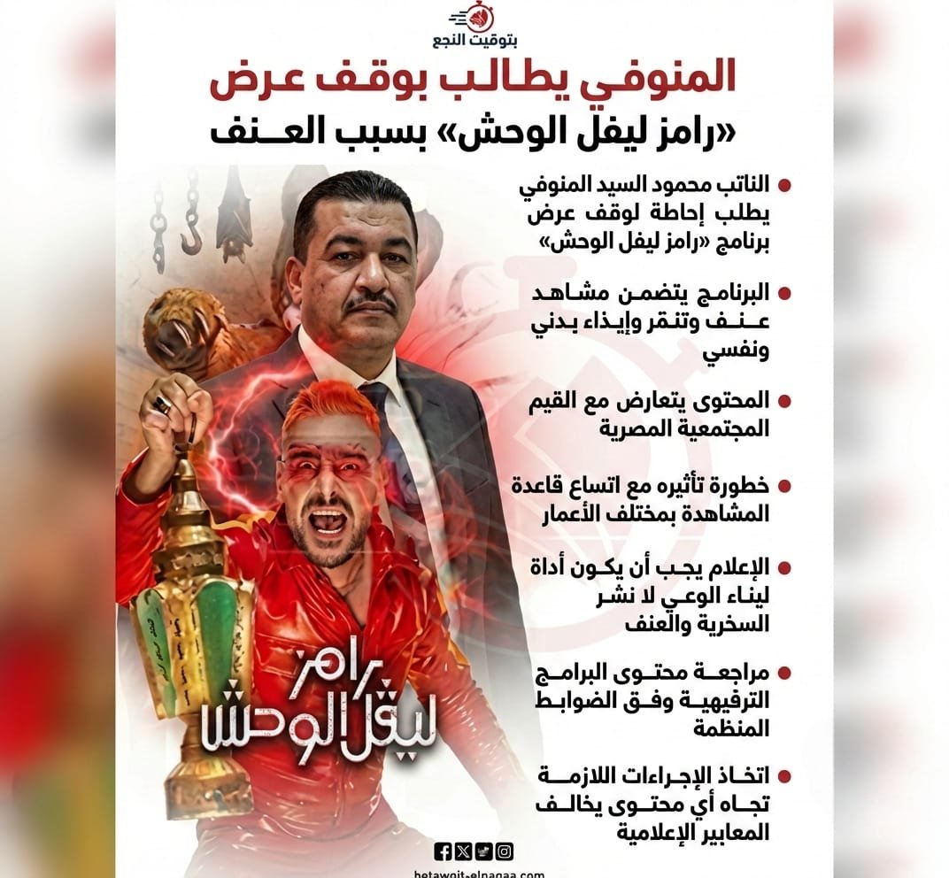 قصة خبر, مقالات ثابته طلب إحاطة لوقف “رامز ليفل الوحش”.. محمود المنوفي: البرنامج ينشر العنف والتنمر ويهدد قيم المجتمع نشر بواسطة editor فبراير 22, 2026 0
