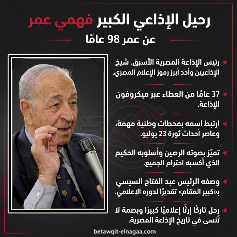 قصة خبر, مقالات ثابته رحيل قامة إعلامية كبيرة من صعيد مصر.. وفاة الإذاعي الكبير فهمي عمر نشر بواسطة editor فبراير 25, 2026 0