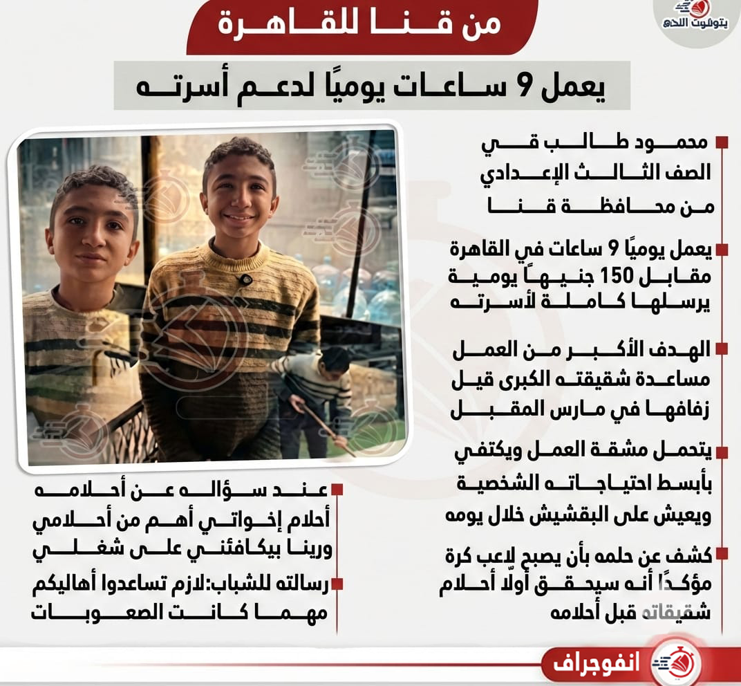 بره الشباك, مقالات ثابته مدينة سكنية من القرن الثامن عشر وجبانة قبطية أسفلها.. كشف أثري جديد يغير خريطة التاريخ في قنا نشر بواسطة admin2 فبراير 23, 2026 0 مسرح جريمة, مقالات ثابته قبل الإفطار بدقائق.. مصرع شاب وإصابة اثنين في انقلاب سيارة أمام مدخل نقادة بقنا نشر بواسطة admin2 فبراير 23, 2026 0 قصة خبر, مقالات ثابته خلال مرور مفاجئ.. صحة نجع حمادي تكشف المخالفات وتحيل المتغيبين للتحقيق نشر بواسطة admin2 فبراير 23, 2026 0 مسرح جريمة, مقالات ثابته متخفيًا بملابس نسائية.. المؤبد لموظف سرق مليون جنيه من خزنة شركة في قنا نشر بواسطة admin2 فبراير 23, 2026 0 قصة خبر, مقالات ثابته استجابة فورية للمواطنين.. محافظ قنا: بدء توصيل مياه الشرب والصرف لشارعين بالترعة الضمرانية بنجع حمادي نشر بواسطة admin2 فبراير 23, 2026 0 قصة خبر, مقالات ثابته محافظ قنا: إحباط محاولة بيع أسطوانات بوتاجاز بالسوق السوداء وضبط المخالفين نشر بواسطة admin2 فبراير 23, 2026 0 مسرح جريمة, مقالات ثابته ملفوفة ببطانية.. العثور على جثة شاب بها طلقات نارية أمام منزله في قنا نشر بواسطة admin2 فبراير 23, 2026 0 قصة خبر, مقالات ثابته محافظ قنا: ضخ 26 ألف أسطوانة بوتاجاز بجميع مراكز المحافظة نشر بواسطة admin2 فبراير 23, 2026 0 قصة خبر, مقالات ثابته استجابة فورية لشكاوى المواطنين.. رفع تراكمات المخلفات بمنطقة “السيدة عائشة” في نجع حمادي نشر بواسطة admin2 فبراير 23, 2026 0 قصة خبر, مقالات ثابته طلب إحاطة لوقف “رامز ليفل الوحش”.. محمود المنوفي: البرنامج ينشر العنف والتنمر ويهدد قيم المجتمع نشر بواسطة editor فبراير 22, 2026 0 قصة خبر, مقالات ثابته محافظ قنا يشدد على توفير أسطوانات البوتاجاز ويحذر من التلاعب بالأسعار نشر بواسطة editor فبراير 22, 2026 0 23 فبراير “الوعي السكاني بالمدارس لتحقيق التنمية المستدامة ” ندوة لمجمع إعلام قنا بمدرسة الثانوية بنات متابعة القراءة 23 فبراير بره الشباك, مقالات ثابته مدينة سكنية من القرن الثامن عشر وجبانة قبطية أسفلها.. كشف أثري جديد يغير خريطة التاريخ في قنا نشر بواسطة admin2 فبراير 23, 2026 0 23 فبراير مسرح جريمة إصابة 3 أشخاص إثر اندلاع حريق داخل شقة سكنية بمنطقة الشنهورية في قنا نشر بواسطة admin2 فبراير 23, 2026 0 23 يناير مقالات ثابته, هن سنتيمترات تفصلهم عن النار.. فتيات قنا يقتحمن أخطر مهن الصعيد ويصنعن المستحيل بأيديهن نشر بواسطة editor يناير 23, 2026 05 فبراير خدماتك, مقالات ثابته شركة مياه قنا تعلن قطع المياه عن 11 منطقة لمدة 10 ساعات غداً الجمعة نشر بواسطة editor فبراير 5, 2026 06 فبراير البرلمان, مقالات ثابته بشرى سارة من البرلمان.. رحاب عبدالرحيم الغول تعلن تشغيل خدمات طبية جديدة بمستشفيات نجع حمادي نشر بواسطة editor فبراير 22, 2026 13 فبراير الدين لله, مقالات ثابته الأوقاف: «حسن استقبال شهر رمضان» عنوان خطبة الجمعة اليوم بالمساجد نشر بواسطة editor فبراير 13, 2026 أحدث الأخبار 23 فبراير “الوعي السكاني بالمدارس لتحقيق التنمية المستدامة ” ندوة لمجمع إعلام قنا بمدرسة الثانوية بنات متابعة القراءة 23 فبراير مدينة سكنية من القرن الثامن عشر وجبانة قبطية أسفلها.. كشف أثري جديد يغير خريطة التاريخ في قنا متابعة القراءة 23 فبراير إصابة 3 أشخاص إثر اندلاع حريق داخل شقة سكنية بمنطقة الشنهورية في قنا متابعة القراءة 23 فبراير قبل الإفطار بدقائق.. مصرع شاب وإصابة اثنين في انقلاب سيارة أمام مدخل نقادة بقنا متابعة القراءة 23 فبراير خلال مرور مفاجئ.. صحة نجع حمادي تكشف المخالفات وتحيل المتغيبين للتحقيق متابعة القراءة 23 فبراير استجابة فورية للمواطنين.. محافظ قنا: بدء توصيل مياه الشرب والصرف لشارعين بالترعة الضمرانية بنجع حمادي متابعة القراءة 23 فبراير متخفيًا بملابس نسائية.. المؤبد لموظف سرق مليون جنيه من خزنة شركة في قنا متابعة القراءة 23 فبراير مصرع صغير إثر سقوطه من الطابق الثالث في قوص بقنا متابعة القراءة 23 فبراير محافظ قنا: إحباط محاولة بيع أسطوانات بوتاجاز بالسوق السوداء وضبط المخالفين متابعة القراءة 23 فبرا