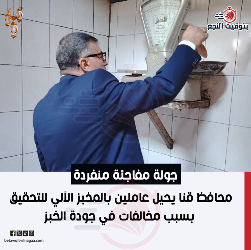 قصة خبر, مقالات ثابته جولة مفاجئة منفردة.. محافظ قنا يحيل عاملين بالمخبز الآلي للتحقيق بسبب مخالفات في جودة الخبز نشر بواسطة admin2 فبراير 24, 2026 0
