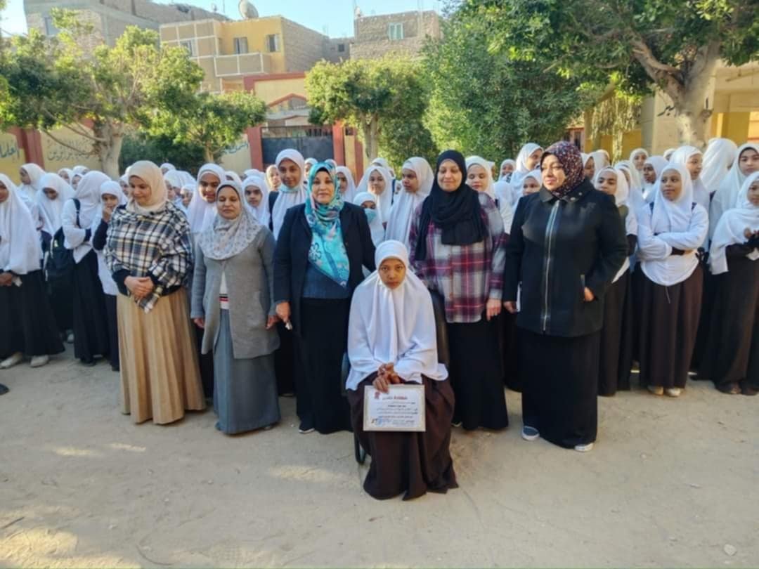 ووسط تكبير ومباركات وتصفيق، احتفلت أسرة معهد فتيات أولاد نجم في طابور الصباح بالطالبة عائشة محمد عبد الرحيم التي ختمت القران الكريم .
