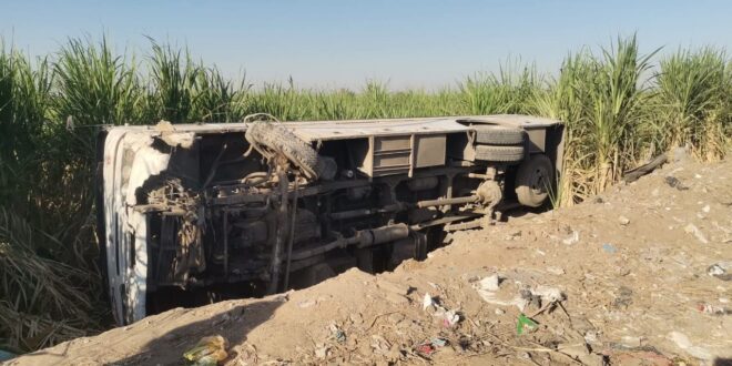 وتلقت الأجهزة الأمنية في مديرية أمن قنا، إخطارًا من غرفة العمليات يفيد انقلاب أتوبيس نقل عمال مصنع الألومنيوم بنجع حمادي، بالقرب من قرية الشيخ على شمالي محافظة قنا.